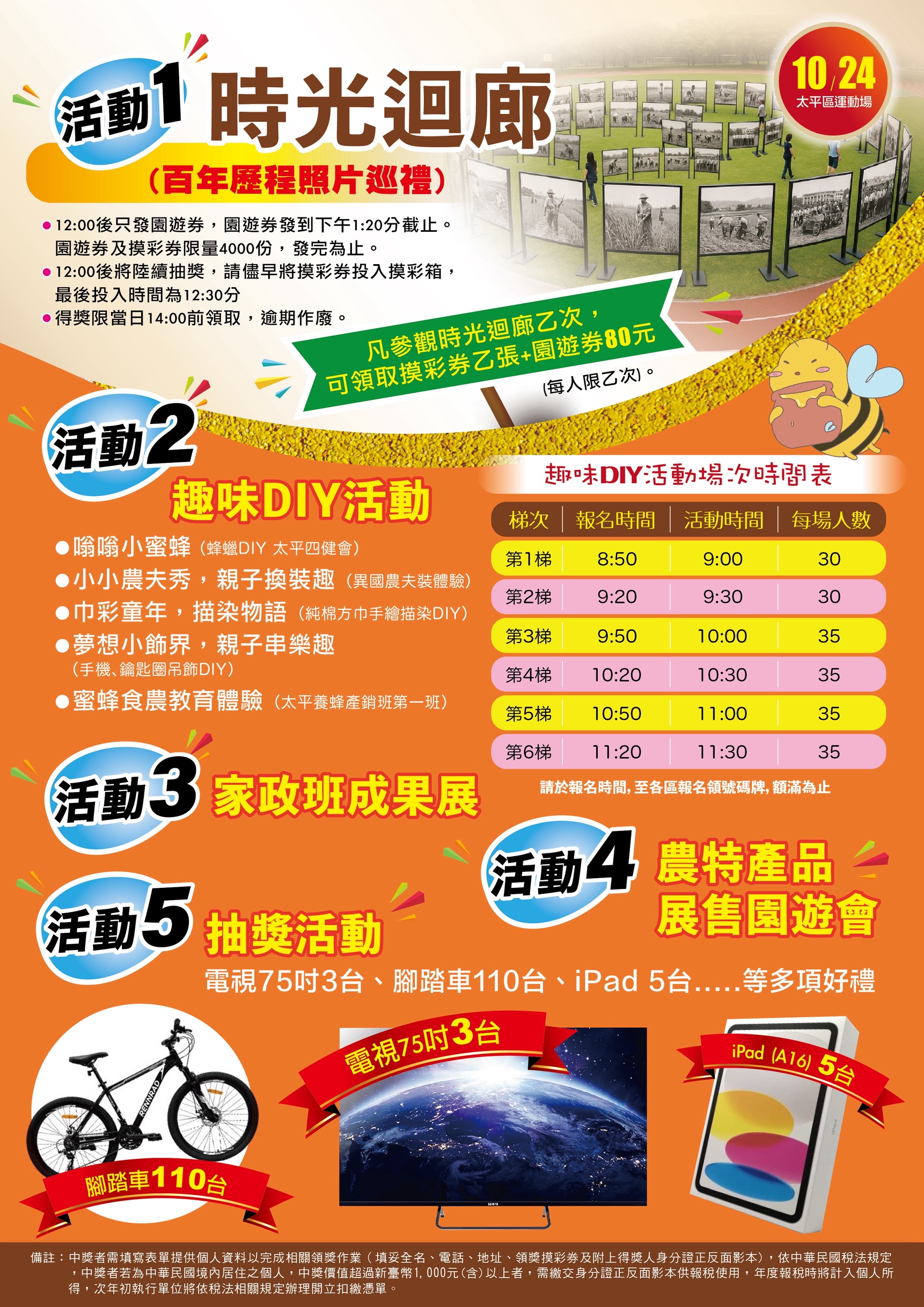 活動五: 抽獎活動(電視75吋3台,腳踏車110台,iPad 5台等多項好禮)